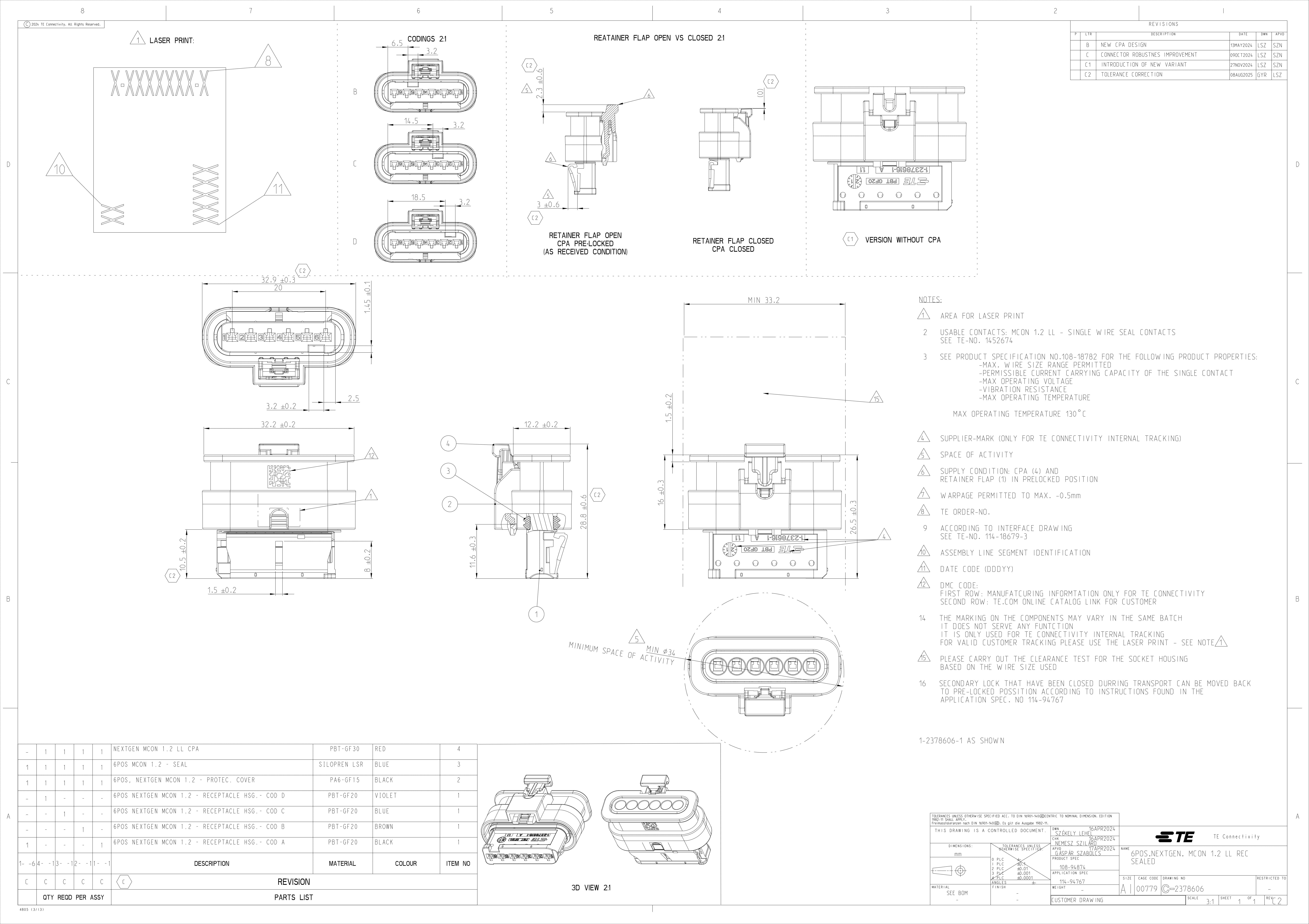 TE Connectivity 1-2378606-1 Automotive Connectors 6POS,NEXTGEN, MCON 1.2 LL REC,SL