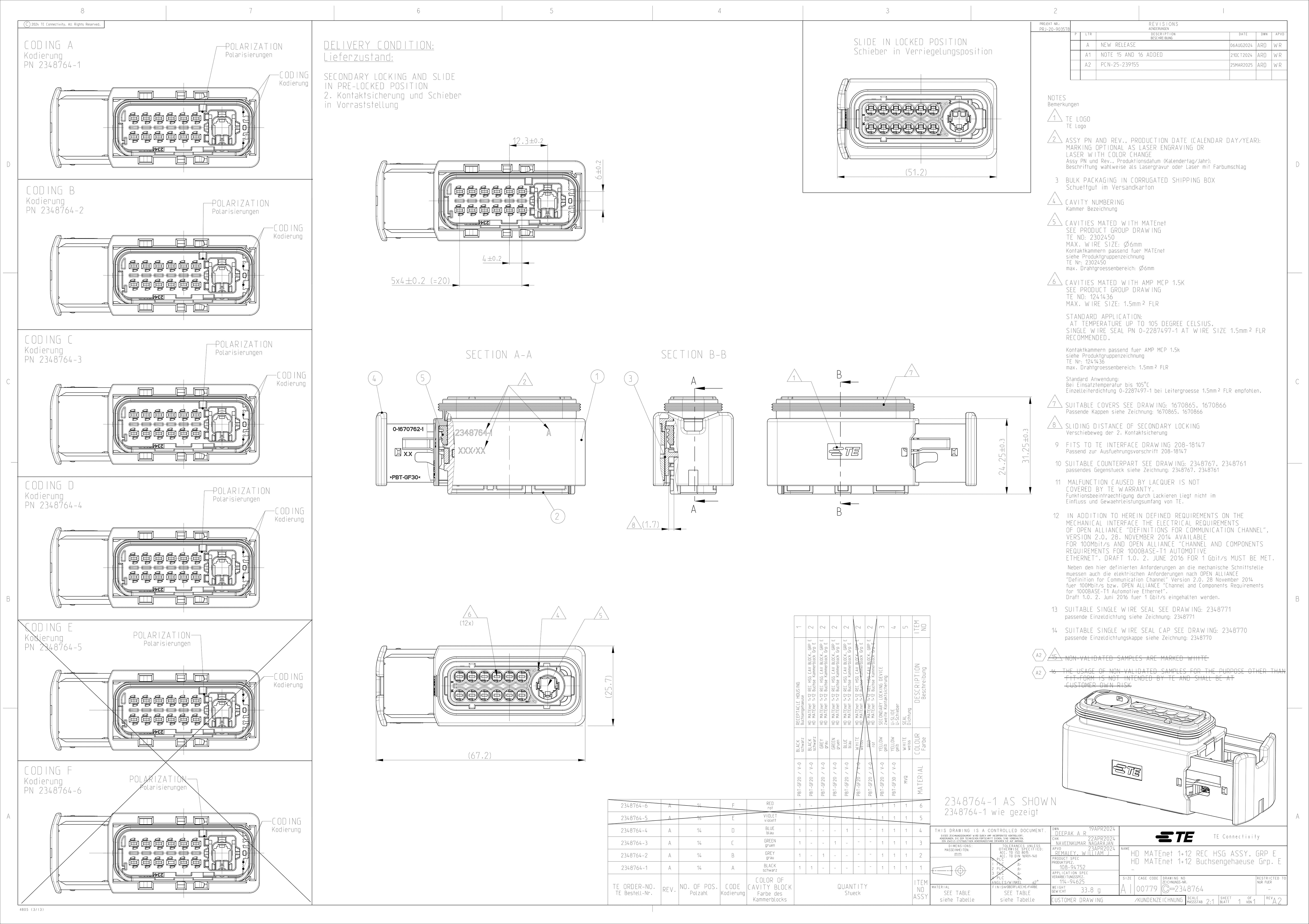 TE Connectivity 2348764-1 Automotive Connectors HD MATENET 1+12 REC HSG ASSY, GR