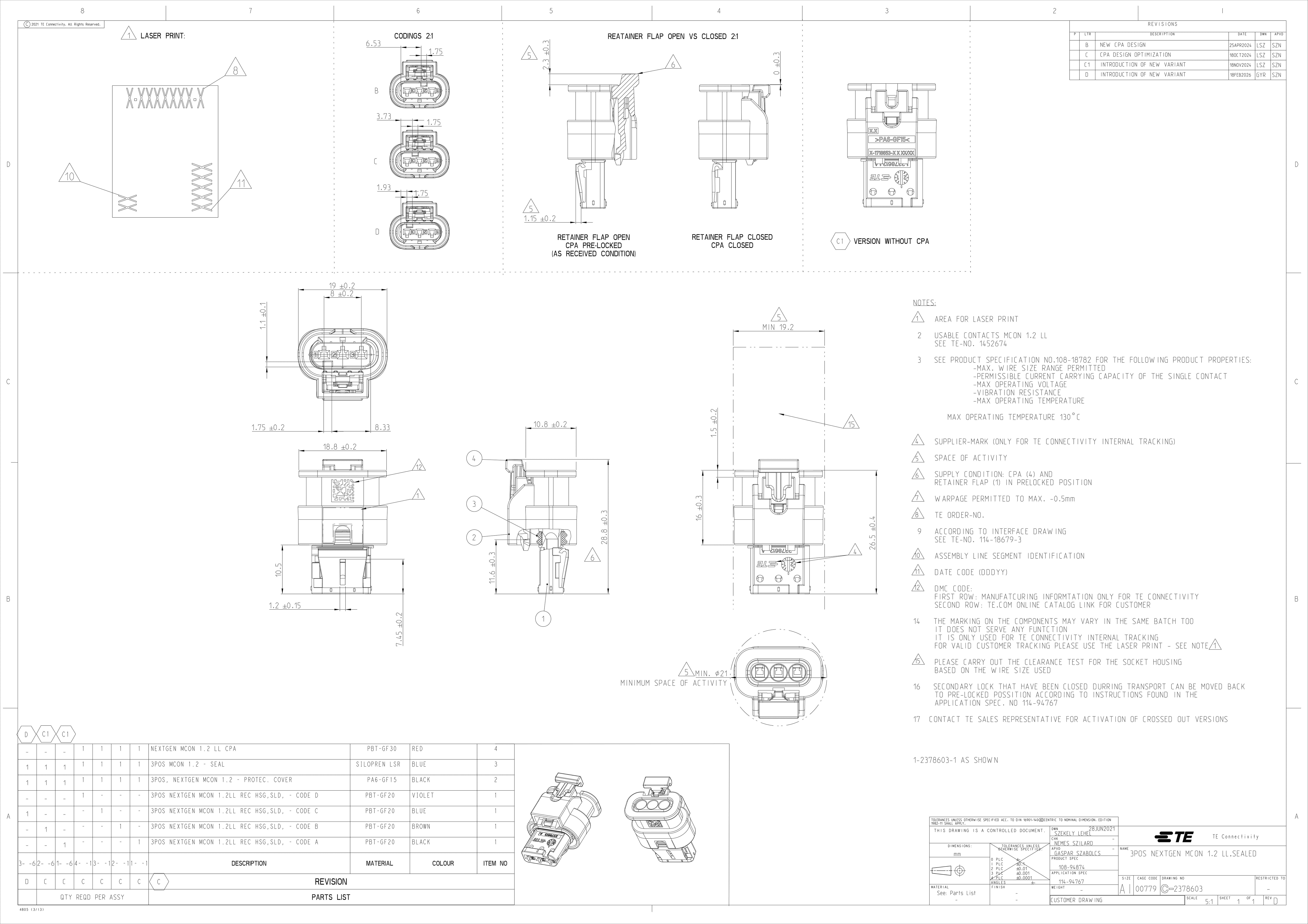 TE Connectivity 4-2378603-1 Automotive Connectors 3POS,NEXTGEN, MCON 1.2 LL REC,SLD,COD D