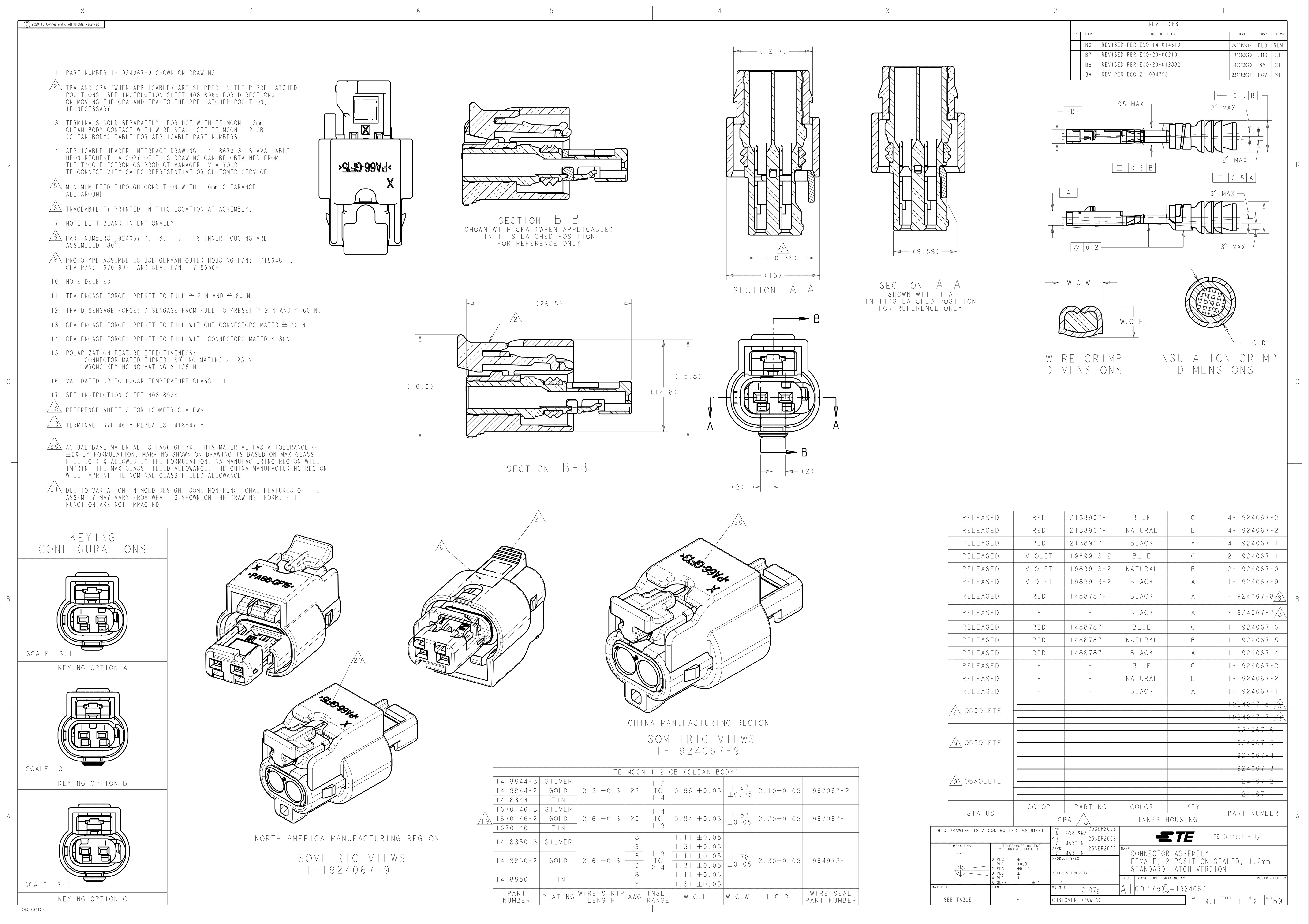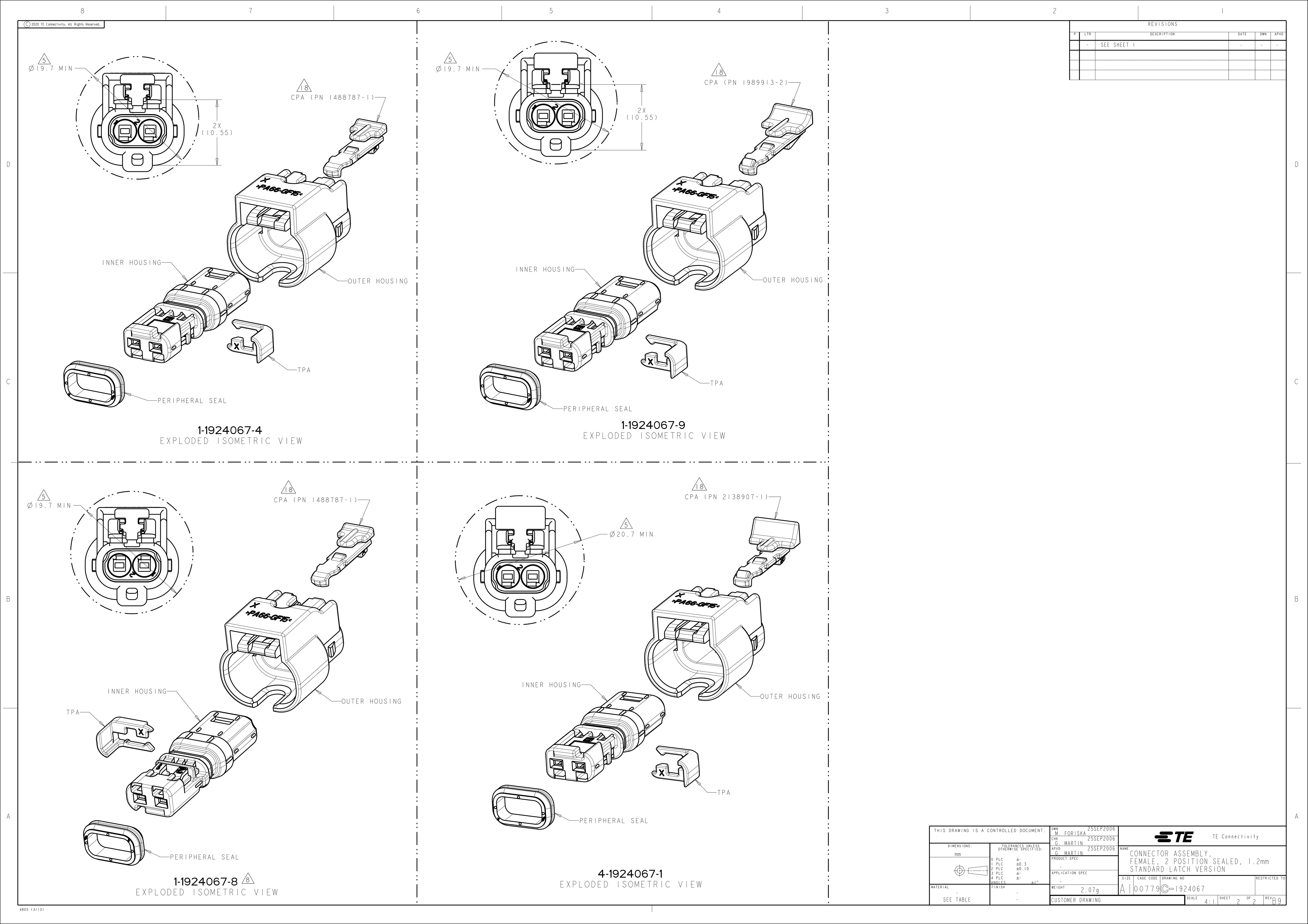 TE Connectivity / Raychem 4-1924067-2 Automotive Connectors 2POS, MCON 1.2 CB REC 2p TL SEALED